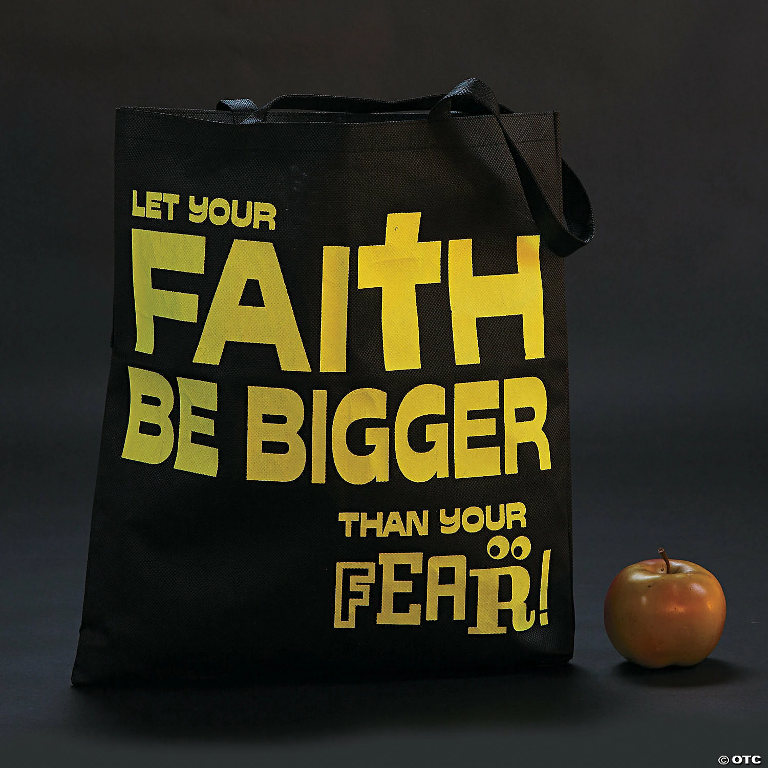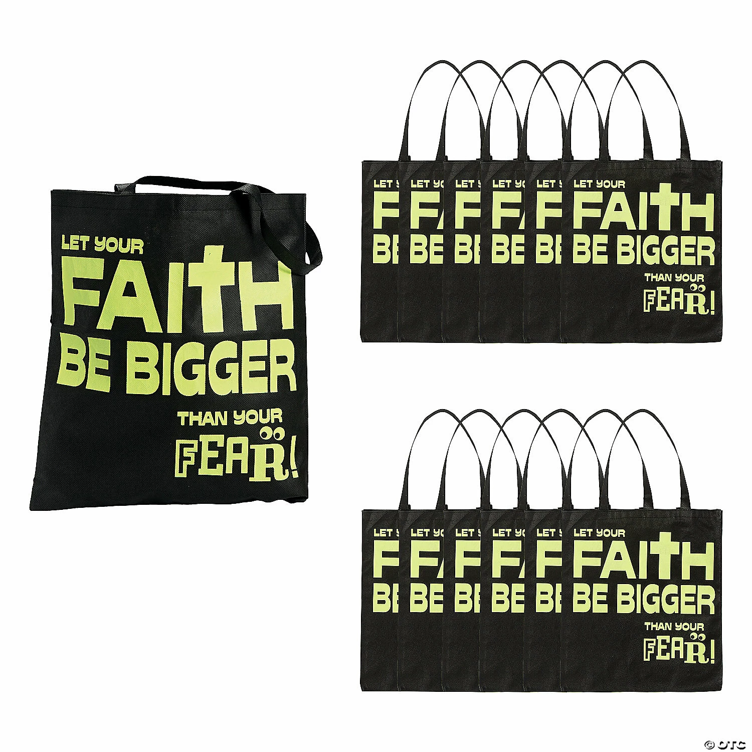 • Multi-purpose: This tote bag can carry a wide range of everyday essentials, including books, toys, groceries, snacks, Halloween candy and more! Bring it along with you on fall outings, trick-or-treating, to school or even to the store. You’ll be glad you did!• Durable Quality: Made of nonwoven polypropylene, this sturdy tote bag won’t let you or your fun down. Plus, you can easily store the reusable bag away until you need it again. • Travel-friendly: No matter where your day takes you, this tote bag is sure to be a handy companion! Designed with easy-to-use straps and a spacious interior compartment, this tote bag is ready for on-the-go fun! Product Description:Faith makes a glowing statement in these Halloween Sunday school giveaways that are as perfect for VBS as they are for trunk-or-treat and other fall festivities. When not trick-or-treating, students can store their homework and other materials in these handy totes—all while keeping fears from seeing the light of day. Use them to tote light groceries, school supplies, lunches and library books. Nonwoven polypropylene bags. 15″ x 17″ with 11″ handles. © OTCSize: 15” x 17”Quantity: 12Material: Nonwoven Polypropylene.