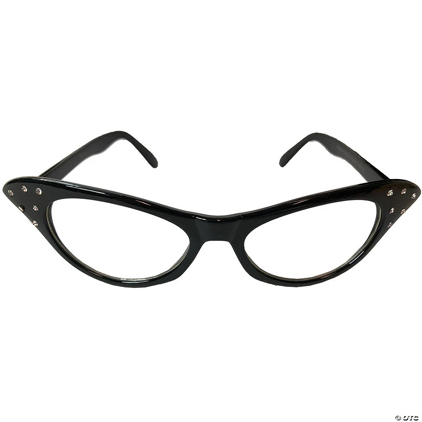 Remember Poodle Skirts And Malt Shakes! These UV protected glasses are great way to express yourself, and to have some fun! Includes: Classic 50’s cat eye shaped black frame glasses with rhinestone accents. – Real rhinestones – Metal hinges – UV 400 protection. Available size: One size fits most 12 years and up.Special Shipping Information: This item ships separately from other items in your order. This item cannot ship to a P.O. Box. This item may be subject to additional processing days.ITEM IS NOT ELIGIBLE FOR EXPEDITED SHIPPING