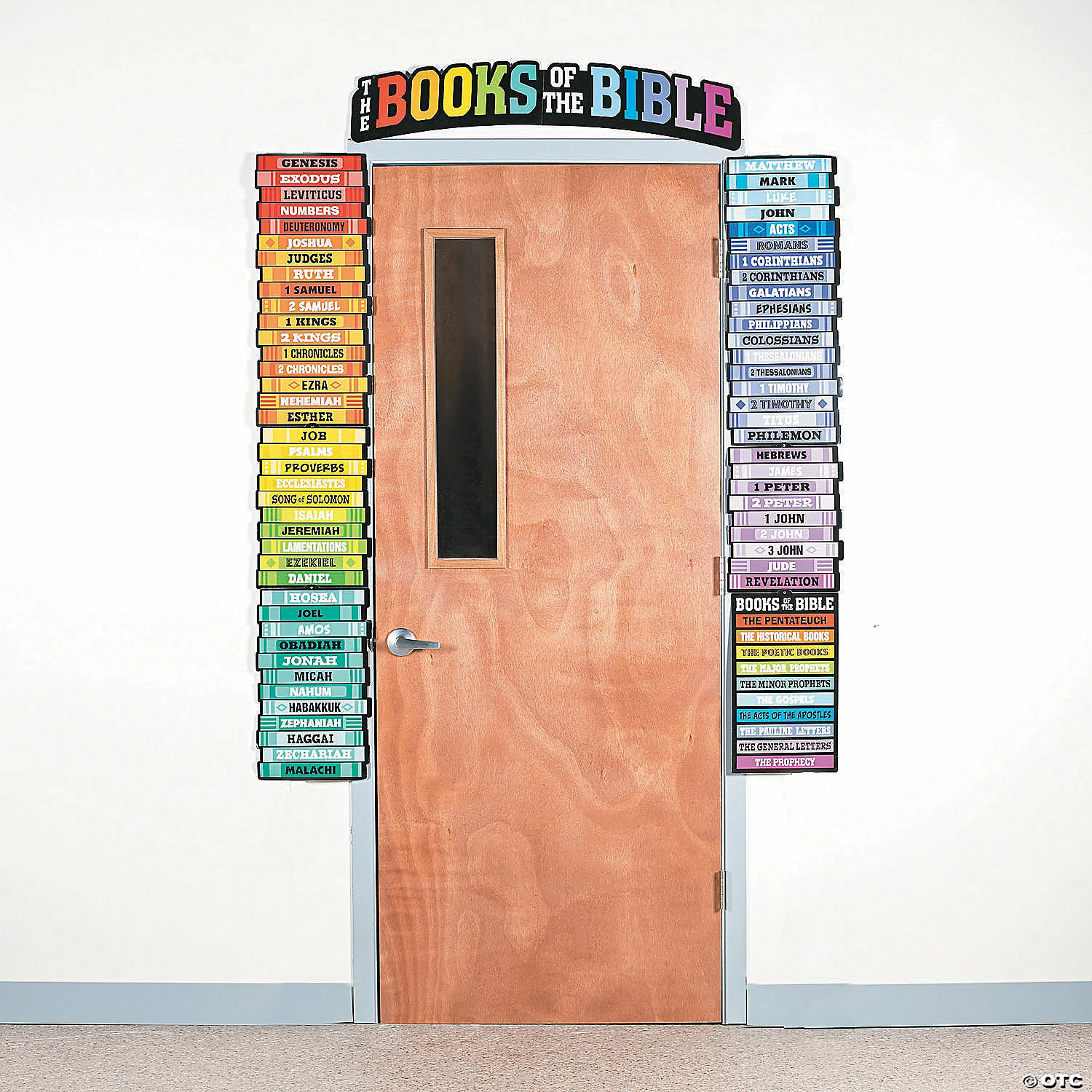 Teach the books of the Bible with this colorful visual aid. Just the right size for a door in your Sunday School classroom, This Bible Timeline Door Border can be hung for everyone in class to see as they walk inside the classroom to learn more about their faith. Cardstock. (8 pcs. per set) 36″ x 59″ © OTC