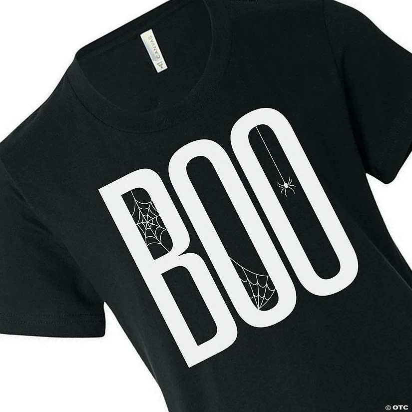 Little ghouls and boys will love sporting a graphic tee like this! Featuring a simple design of the word “Boo” printed boldly against black, this Halloween t-shirt is fun to sport during seasonal activities like heading to the pumpkin patch, bonfires or riding hayracks. If your kiddo wants a simple DIY Halloween costume, they could sport this and just use makeup to look like a walking spirit! © OTC