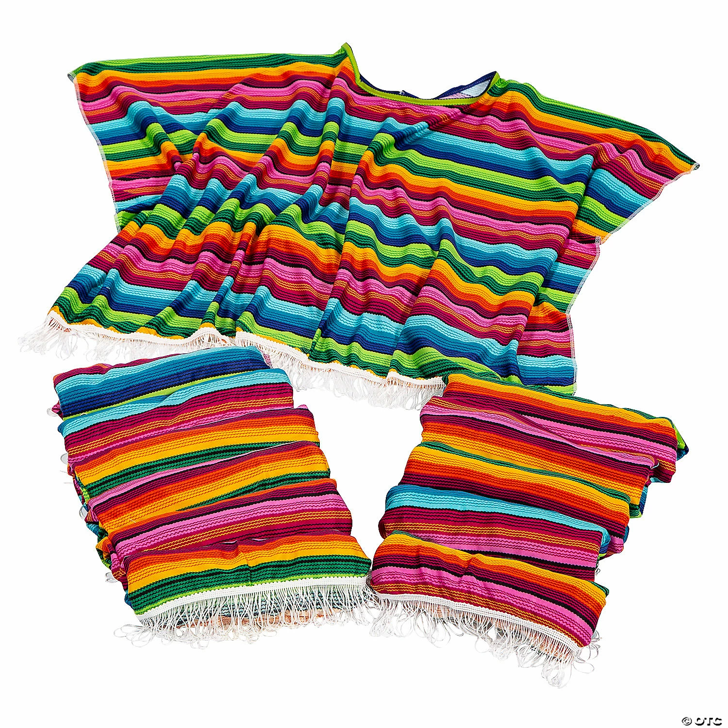 With a classic serape pattern, this set of 12 ponchos is the perfect fit for any southwestern party, a south-of-the-border celebration, or a Cinco de Mayo party! With a standard fit, it makes a great addition to party accessories or costume accessories any time of year. Polyester. 35″ x 55″ Imported. © OTC
