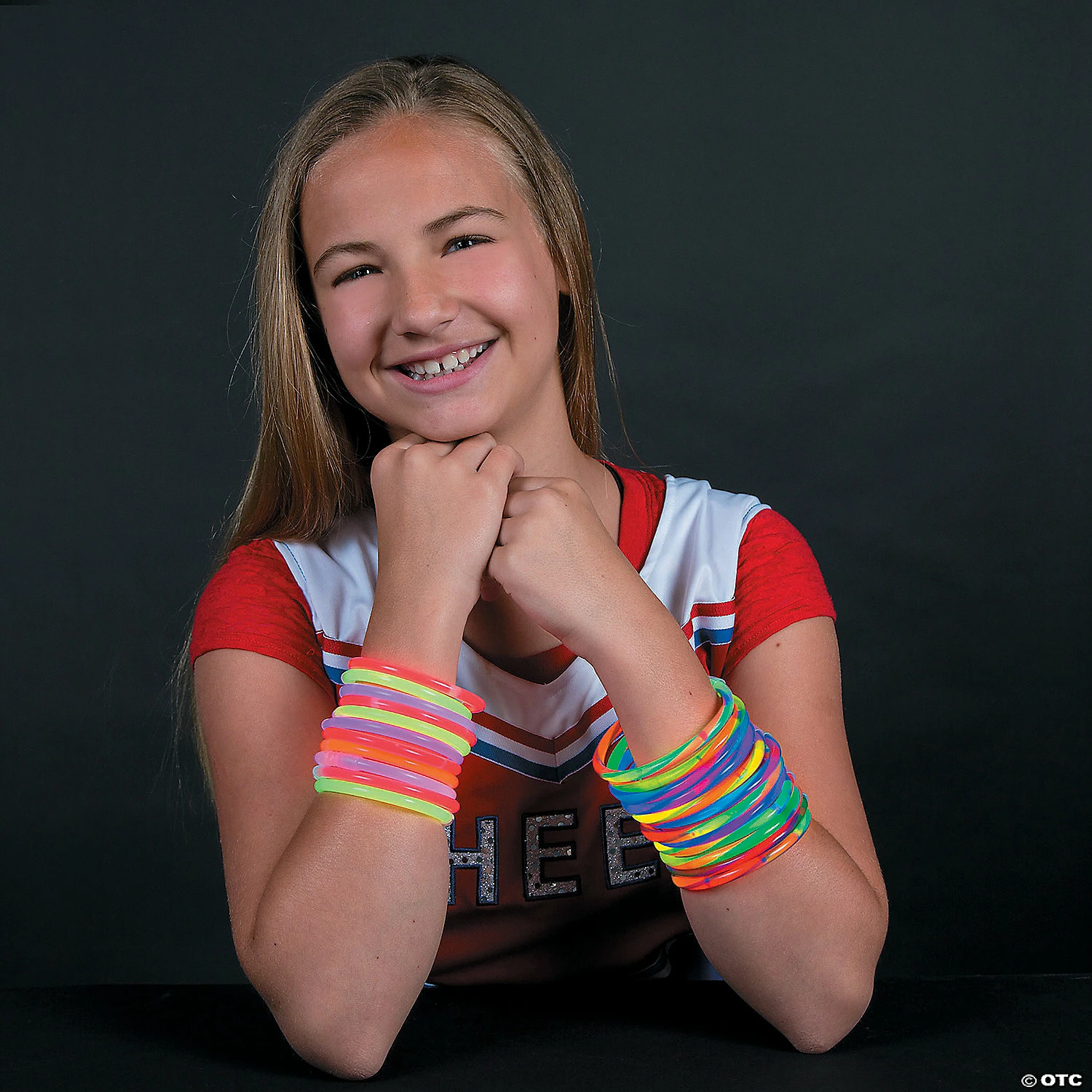 Pile on a variety of fun color combinations by wearing this Glow Bracelet Assortment! Pass these party favors out at your at your next Halloween party or event and watch everyone have fun lighting up the night sky. Perfect as party favors, watch as adults and kids alike have fun with these glow bracelets. These colorful bracelets are perfect for trick-or-treat bags or giving away as raffle prizes. Whether hosting a kids’ party or attending a special event, this Glow Bracelet Assortment is sure to be a hit day or night! Includes solid color glow bracelets and glow swizzle bracelets. Plastic. (100 pcs. per unit) 8″ Assortment may vary.