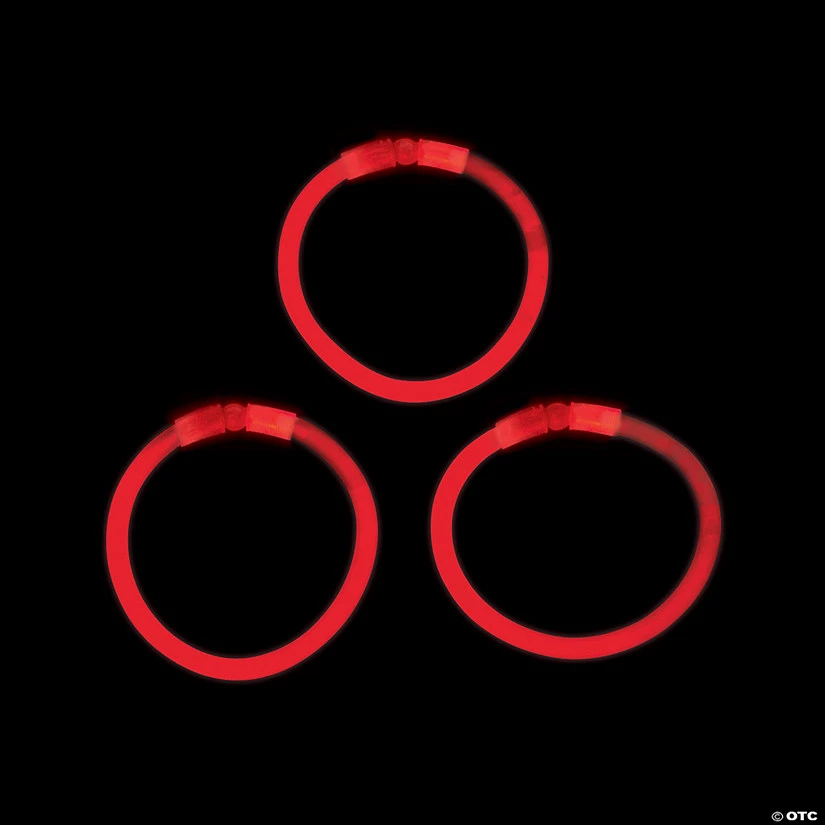Have your guests seeing red! Coordinate with your event’s color and brighten your life with these 8″ glow bracelets! Use them at parties, sporting events or concerts to make every event more fun! Kids love to wear several at once! Glow bracelets are also easy safety items; have your child wear one when playing outdoors at night and include them on their next camping trip! (50 pcs. per unit) Connectors may be packaged separately in the bottom of the container.