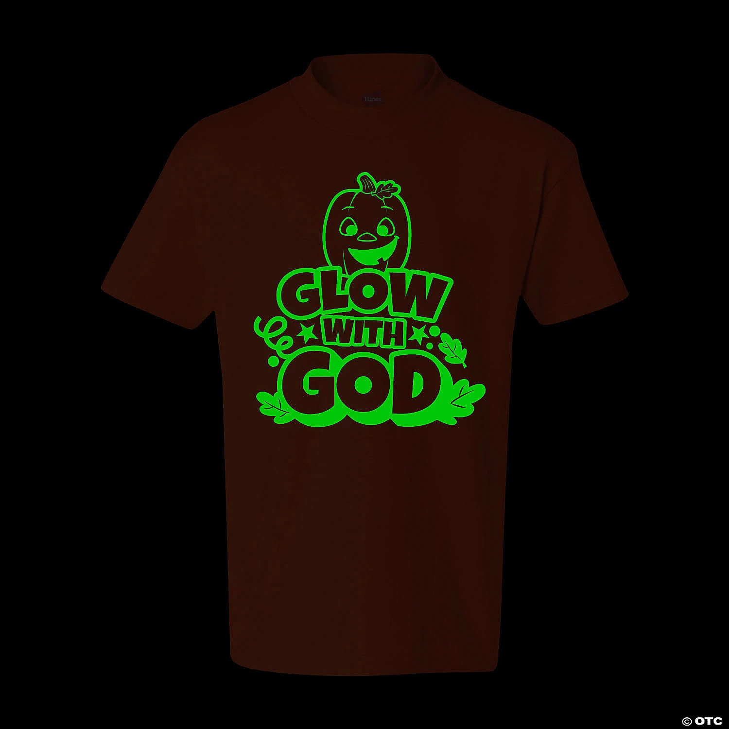 These aren’t ordinary Christian pumpkin t-shirts – they glow! Expose the shirts to light to activate the glow and then turn your church’s Harvest festival into a glow party! Delight kids with these shirts and explain to them that God’s light shines brighter than anything else on Halloween…and every day! © OTC• Brand: Hanes• Double-needle stitched lay flat collar, armholes and sleeves• Shoulder-to-shoulder taping• Tag-free• Imported• CPSIA tracking label compliant