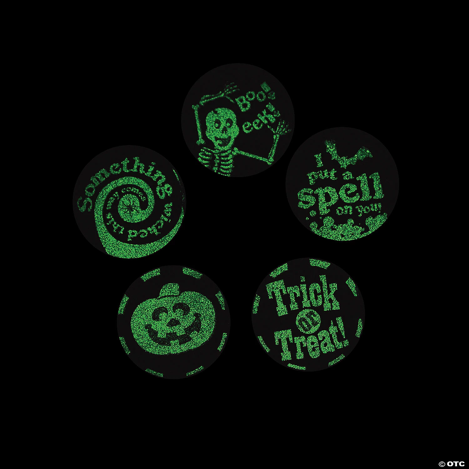 Includes assorted Halloween phrases and icons! Add these glow-in-the-dark Halloween stickers to your classroom supplies to hand out for good behavior, or add them to your child’s trick-or-treat bag for them to glow into the night! Paper. (100 stickers per roll, shrink-wrapped) 1 1/2″ Expose items to daylight to activate glow. © OTC