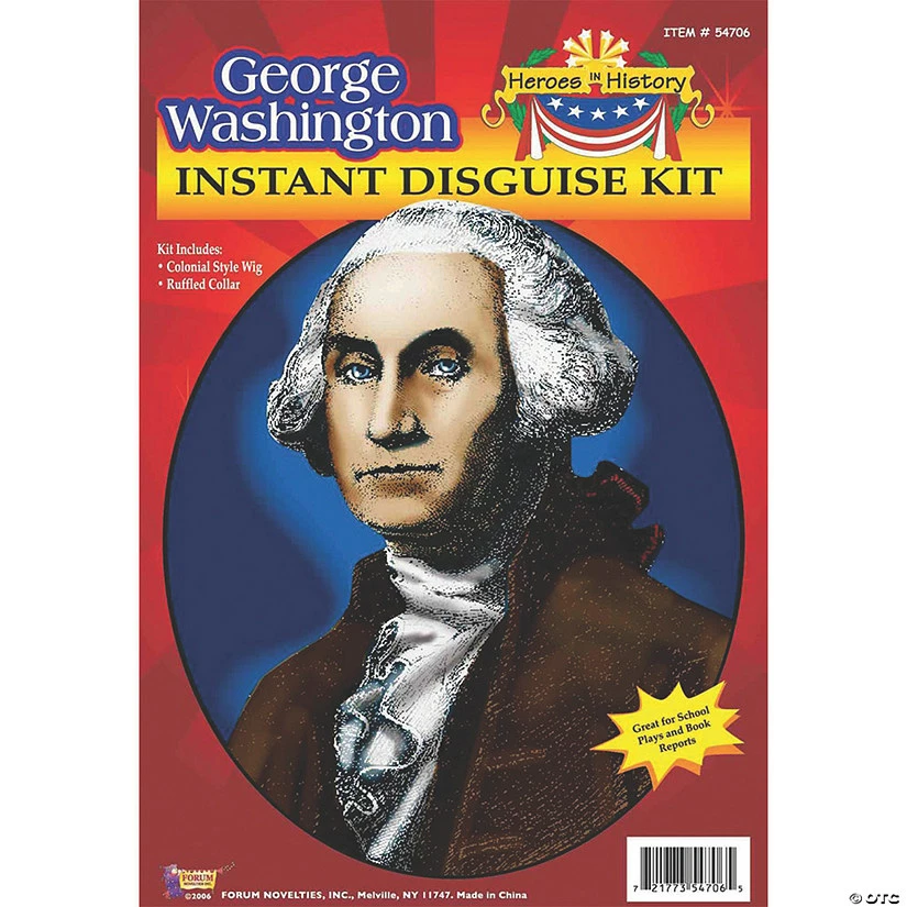 Dress up in this George Washington Wig & Collar costume for the Halloween costume party. school plays or to give a classroom presentation. George Washington is one of histories most recognizable characters and these costume accessories make dressing up like him easy! White colonial wig and ruffled collar. One size fits most.Special Shipping Information: This item ships separately from other items in your order. Imported.