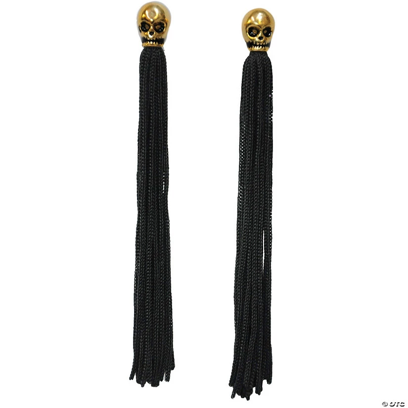 A great accent to your Halloween costume, goth ensemble or really, anytime you want to show a little personal flair! Includes: Metal skulls and black tassels on each earring! 4″ long.Special Shipping Information: This item ships separately from other items in your order. This item cannot ship to a P.O. Box. This item may be subject to additional processing days.ITEM IS NOT ELIGIBLE FOR EXPEDITED SHIPPING