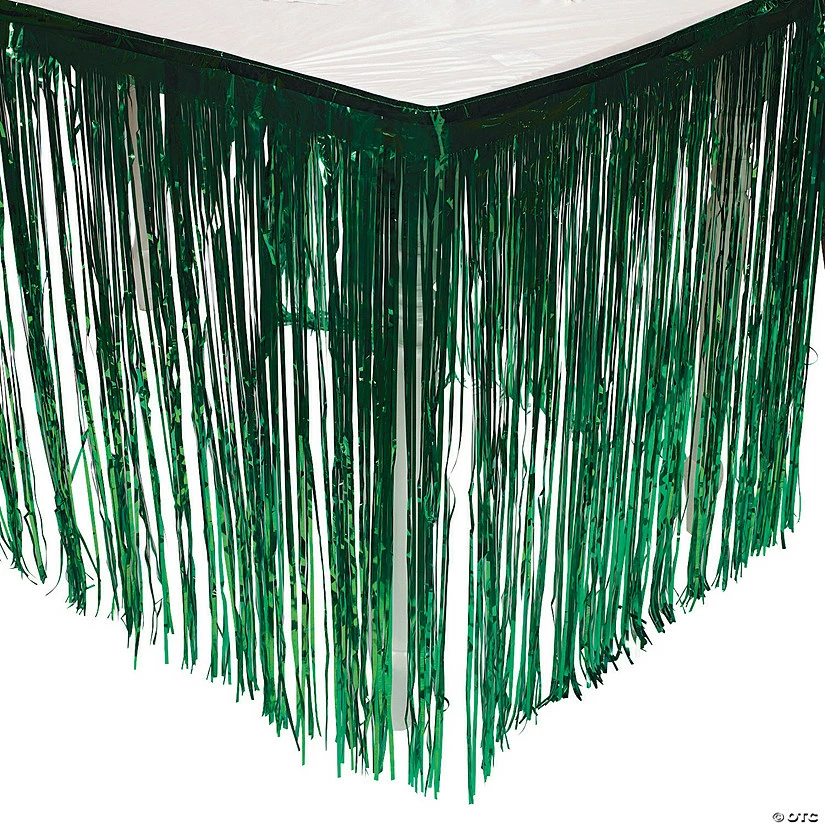 Add to your party supplies and easily detail any table for your event! Blue Metallic Fringe Table Skirts are great party decorations for graduation parties, birthdays, luaus, wedding receptions and other celebrations. Match this skirt to the rest of your blue color scheme! Plastic. 9 ft. x 29″