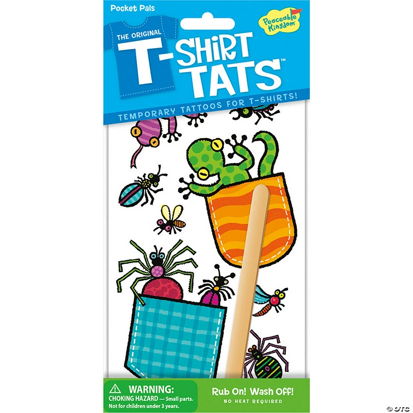 Jean Tats are a fun, easy way for kids to design and decorate their denim with temporary tattoos! Tattoos apply in seconds and come off in the washing machine. Includes 1 sheet of temporary tattoos and rub-on stick.