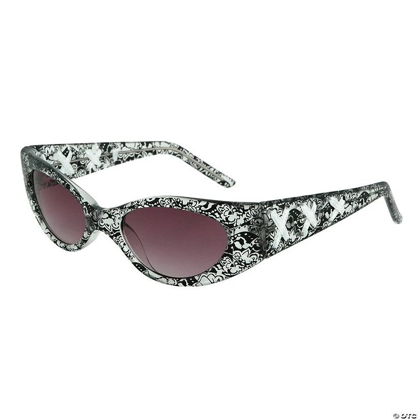 Ornate patterned black and white frame, metal hinges, UV 400 protection. Fits adults and kids 12 and up.Special Shipping Information: This item ships separately from other items in your order. This item cannot ship to a P.O. Box. This item may be subject to additional processing days.ITEM IS NOT ELIGIBLE FOR EXPEDITED SHIPPING