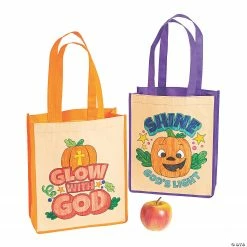 Color Your Own Medium Christian Pumpkin Halloween Nonwoven Tote Bags – 12 Pc.
